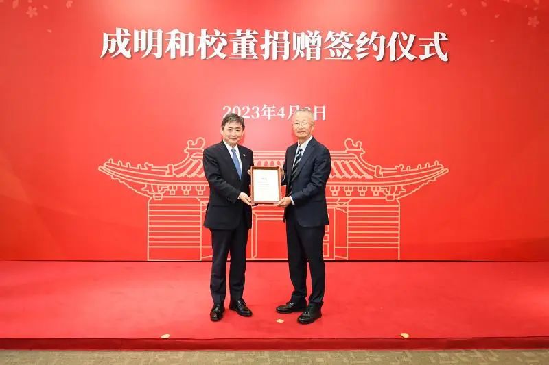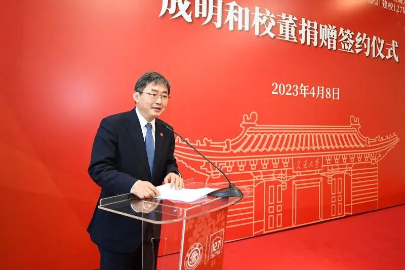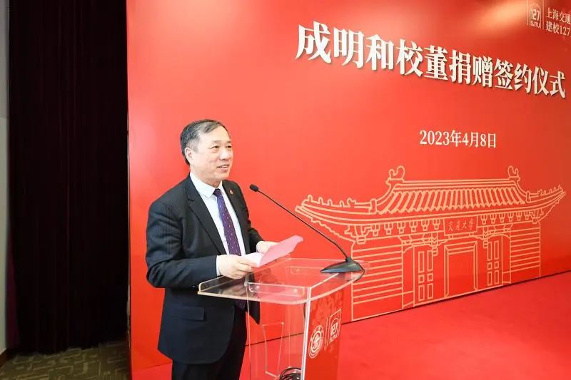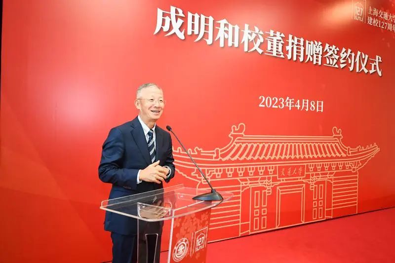 成明和深情讲述了家族与交大的渊源,对母校的教育之恩表示感谢。他表示,他在母校度过了难以忘怀的大学岁月,在交大的所学所思,对他的事业发展产生了深远的影响。他表示,很高兴为母校的人才培养贡献力量,将继续助力母校迈入世界一流大学前列,并祝福母校蓬勃发展,明日更加辉煌。