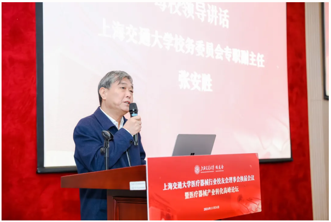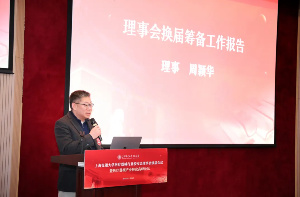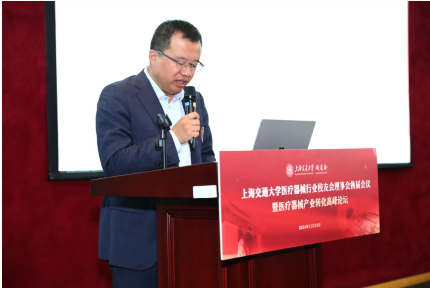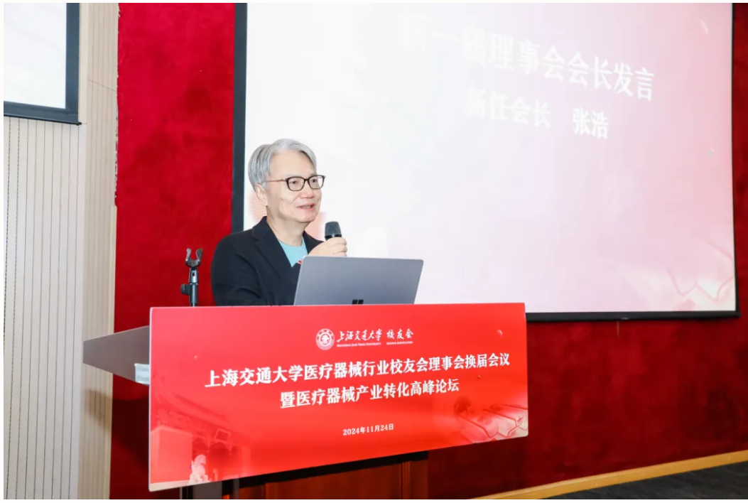 2024年11月24日,bat365在线平台登录医疗器械行业校友会理事会换届大会暨医疗器械产业转化高峰论坛在徐汇校区新上院N100报告厅举办。bat365在线平台登录校董、第三届医疗器械行业校友会名誉会长成明和,会长张浩,执行会长周颖华等百余位校友参加会议。